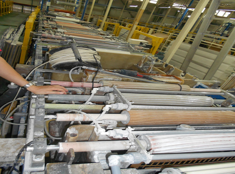 10. 應用背景:在電子工業(yè)領域中,高純度陽極氧化鋁箔的需求量近年來顯著增加。為了得到具有高電容率的的均勻氧化膜,需要在特別的電解液中把鋁箔進行陽析氧化。電流密度1000-5000A/平米。電流直接通過薄鋁箔是很困難的,需要在鋁箔兩旁安裝輔助陽極和輔助陰極,以不直接接觸形式向鋁箔通電。通常在電解液中含有有機物,有機化合物在陽極上被氧化分解,而污染了電解液,同時有機物吸附在電極表面上,使電極電位顯著升高而破壞了涂層,因此需要低氧過電位的涂層陽極,目前該工藝主要采用的是銥鉭陽極。